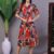 Vibrant, tiered mini-dress featuring an intricate, lace-trimmed V-neckline and tasseled hems on the sleeves and skirt. It offers a flattering, flowy fit perfect for a chic, bohemian style.